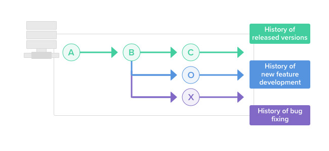 Trong quá trình làm việc hiện nay có nhiều dự án phát triển song song thế nên cần nhiều branch để hỗ trợ. Dưới đây bạn hãy là hình ảnh chi nhánh hoạt động.